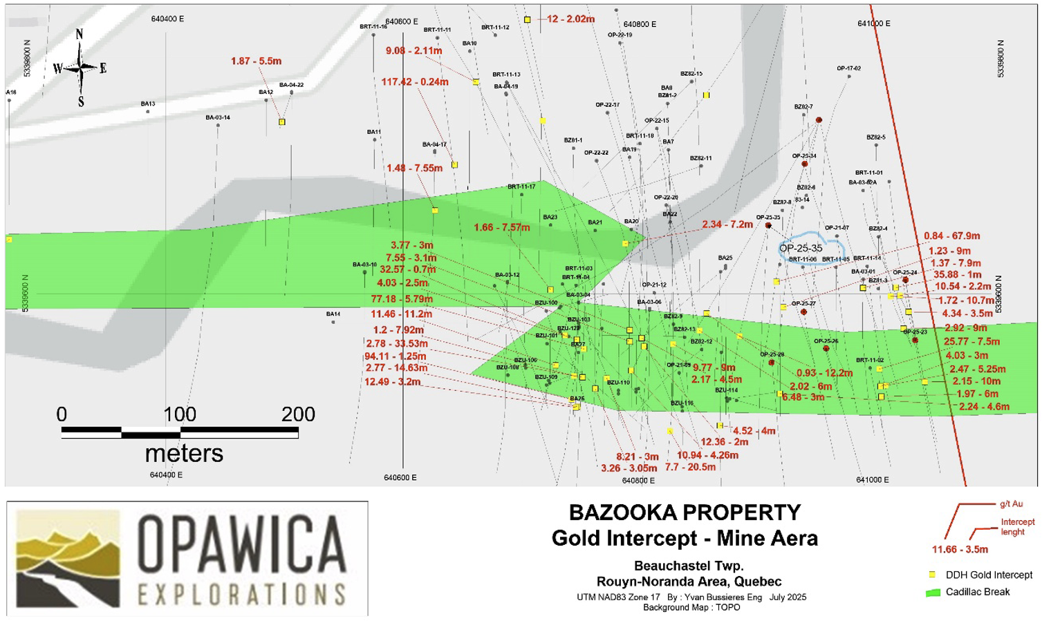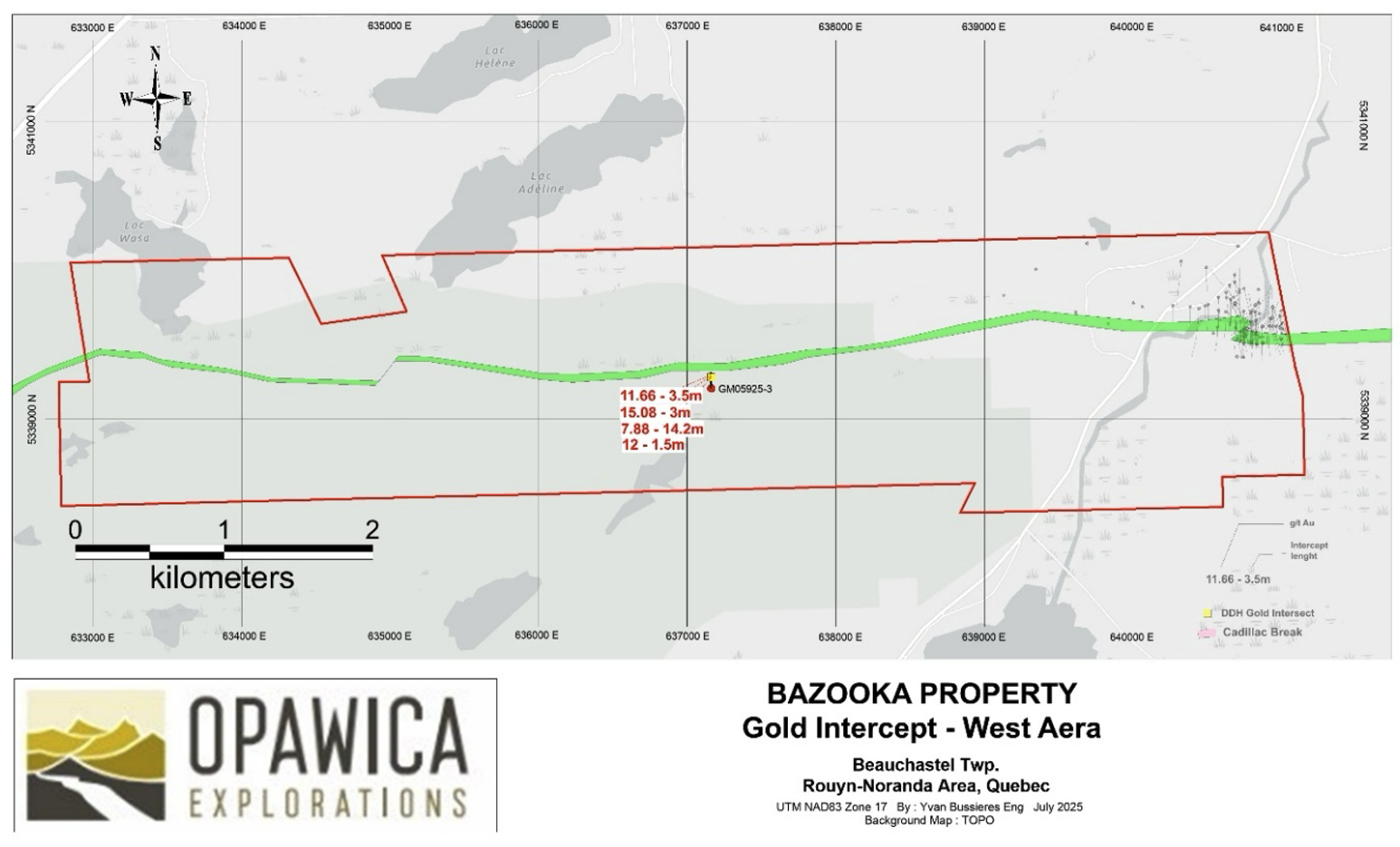 VANCOUVER, B.C. – October 16th, 2025 – Opawica Explorations Inc. (TSXV: OPW) (OTC: OPWEF) (FRA: OE5) (the “Company” or “Opawica”) is pleased is exploring for a Conceptual Exploration Target at its Bazooka Property, strategically located along the world-renowned Cadillac-Larder Lake Break (CLLB) — one of the most prolific gold-bearing structures globally.